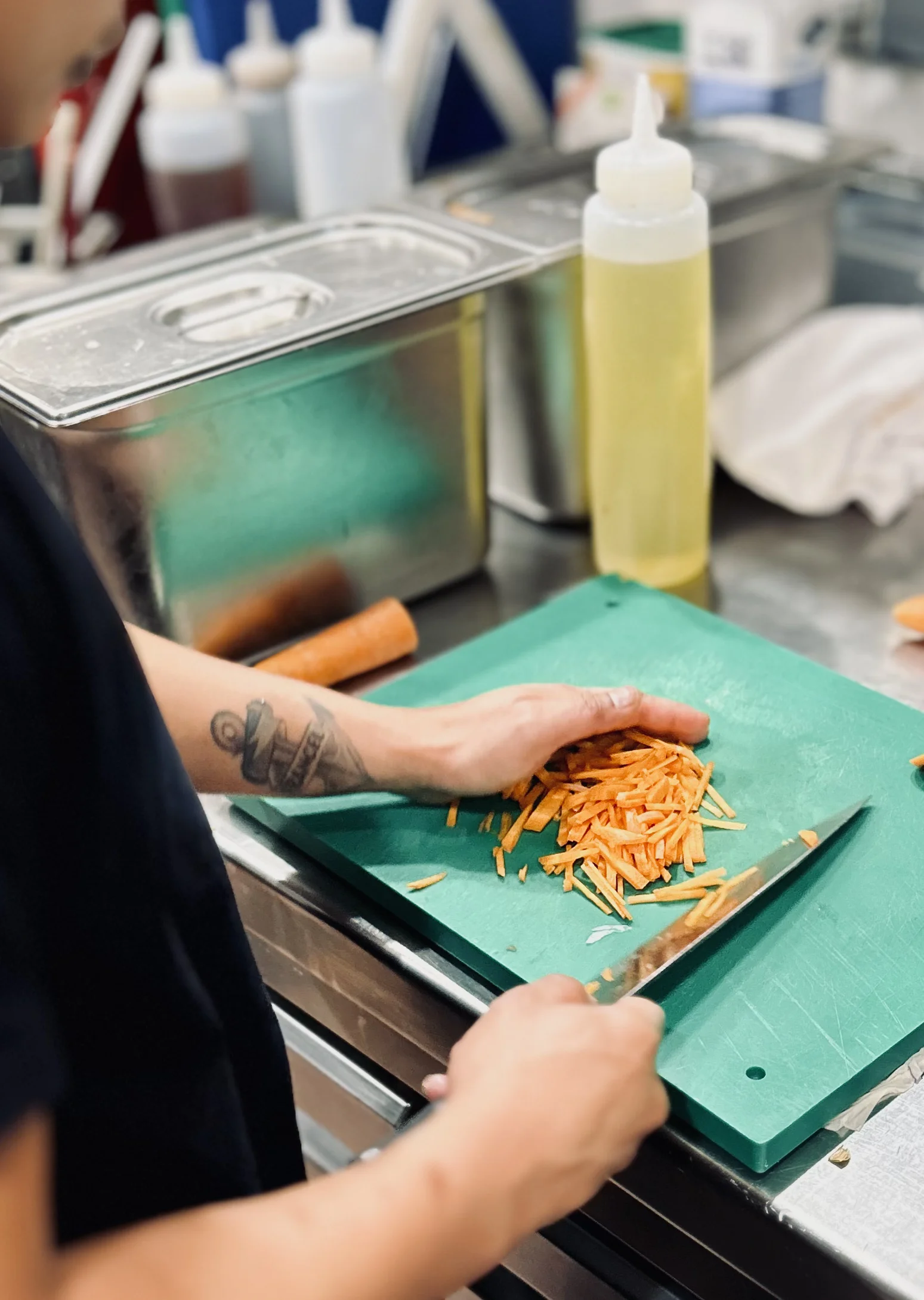 • Reorganización de zonas de preparación y emplatado, mejorando la ergonomía del personal.